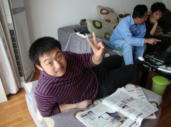 瞧,伸手指的小伙子,嘎嘎,這小伙真帥,他是俺公司的工程師,馬上要出國留學(xué)了,大家多看幾眼吧