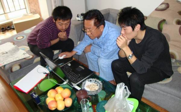 IT精英的對話,中間的叔叔是俺們老大的老爺子,IT世家呀,叔叔那電腦操作的,相當(dāng)?shù)呐j,三個(gè)IT人士在網(wǎng)上象棋戰(zhàn)