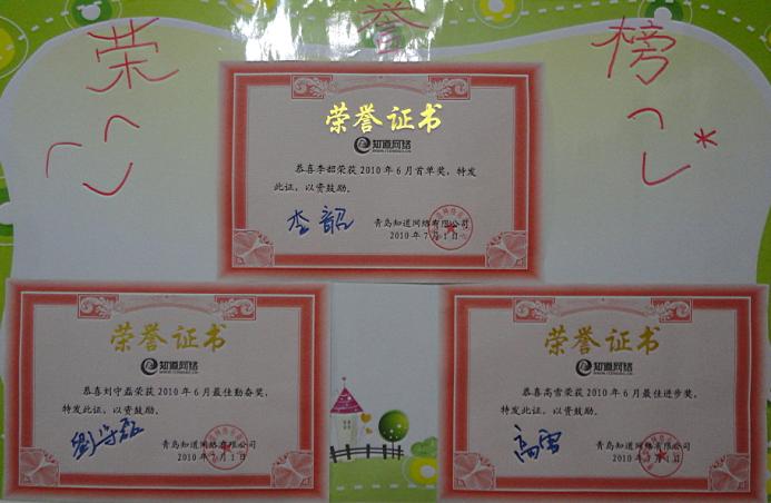 在此,青島知道網絡有限公司對2010年6月各獎項獲得者致以最熱烈的掌聲與祝福,同時也希望各獎項獲得者乘風破浪,再接再勵,戒驕戒躁,更上一層樓。