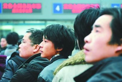 今年春運自1月30日至3月10日,共計40天。從今天開始,北京地區(qū)已經(jīng)進入春運狀態(tài)。昨日記者在西站北廣場天橋下看到,排隊上橋的旅客排成長隊,等候5分鐘左右才能登上扶梯,春運客流已經(jīng)開始顯現(xiàn)!皬纳现苣╅_始,西站的上車人數(shù)已經(jīng)達到了12萬人次,比平日增加了2萬,這新增的2萬主要都是回家的學生。”西站新聞發(fā)言人姚鴻仁表示。